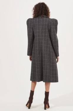 A style above the rest, the Audrey Coat is the cold-weather staple. It features exaggerated padded shoulders that offer an elevated fit. Notched lapel leads to a double-breasted front button placket. Flap pockets at the hips. Long sleeves. Subtle A-line silhouette.