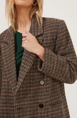 Autumn calls for new silhouettes. This blazer features an oversized fit with a notched collar and buttoned front. Long sleeves. Flap pockets.