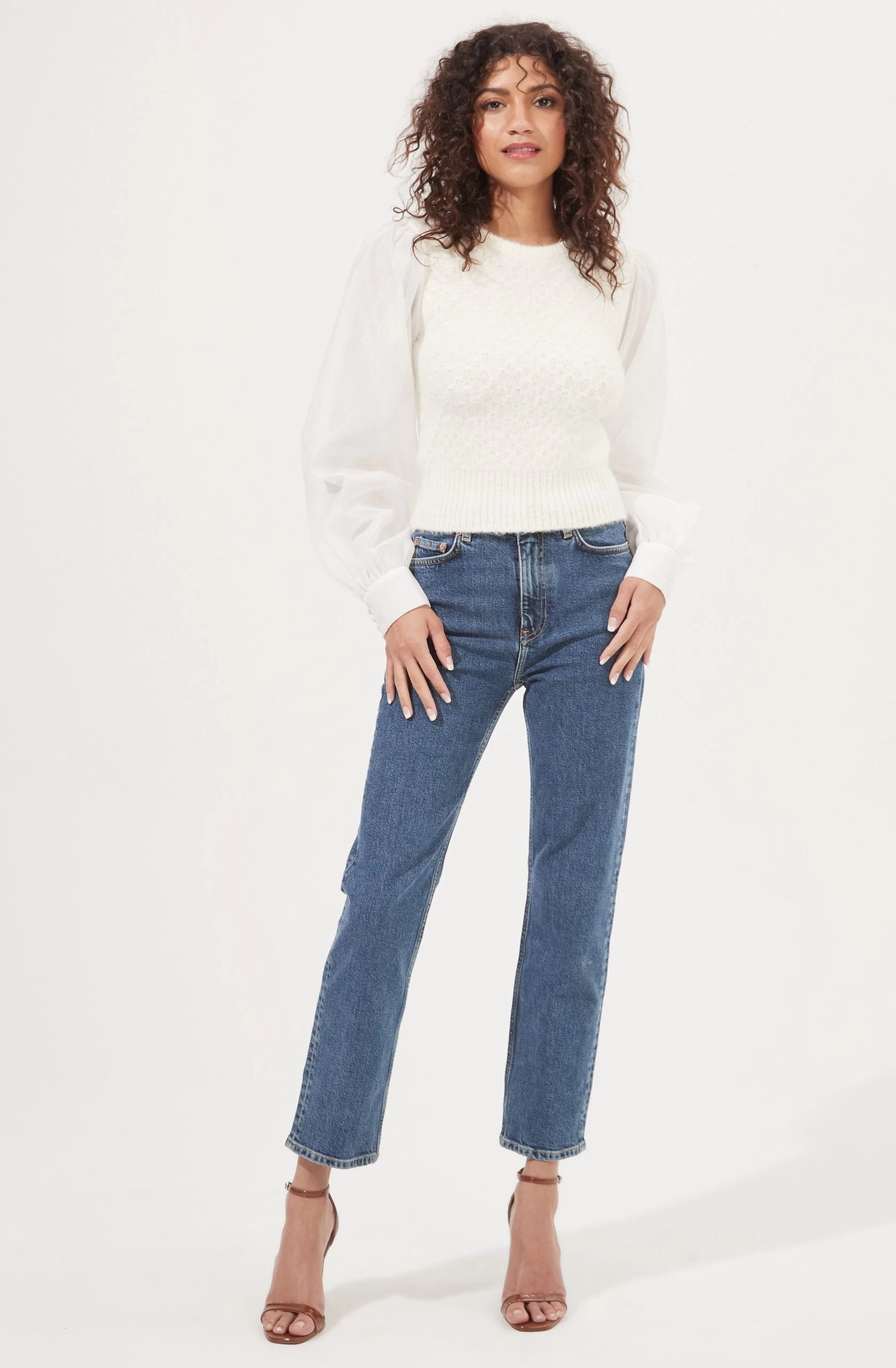 Bijoux Fuzzy Knit Puff Sleeve Sweater