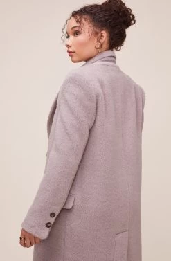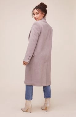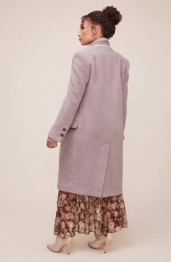 Sleek and sophisticated, the Blair coat accentuates your outfit while keeping you warm! It features a notched lapel that descends to a double breasted front. Flap pockets on the side. Long sleeves. Vented hem.