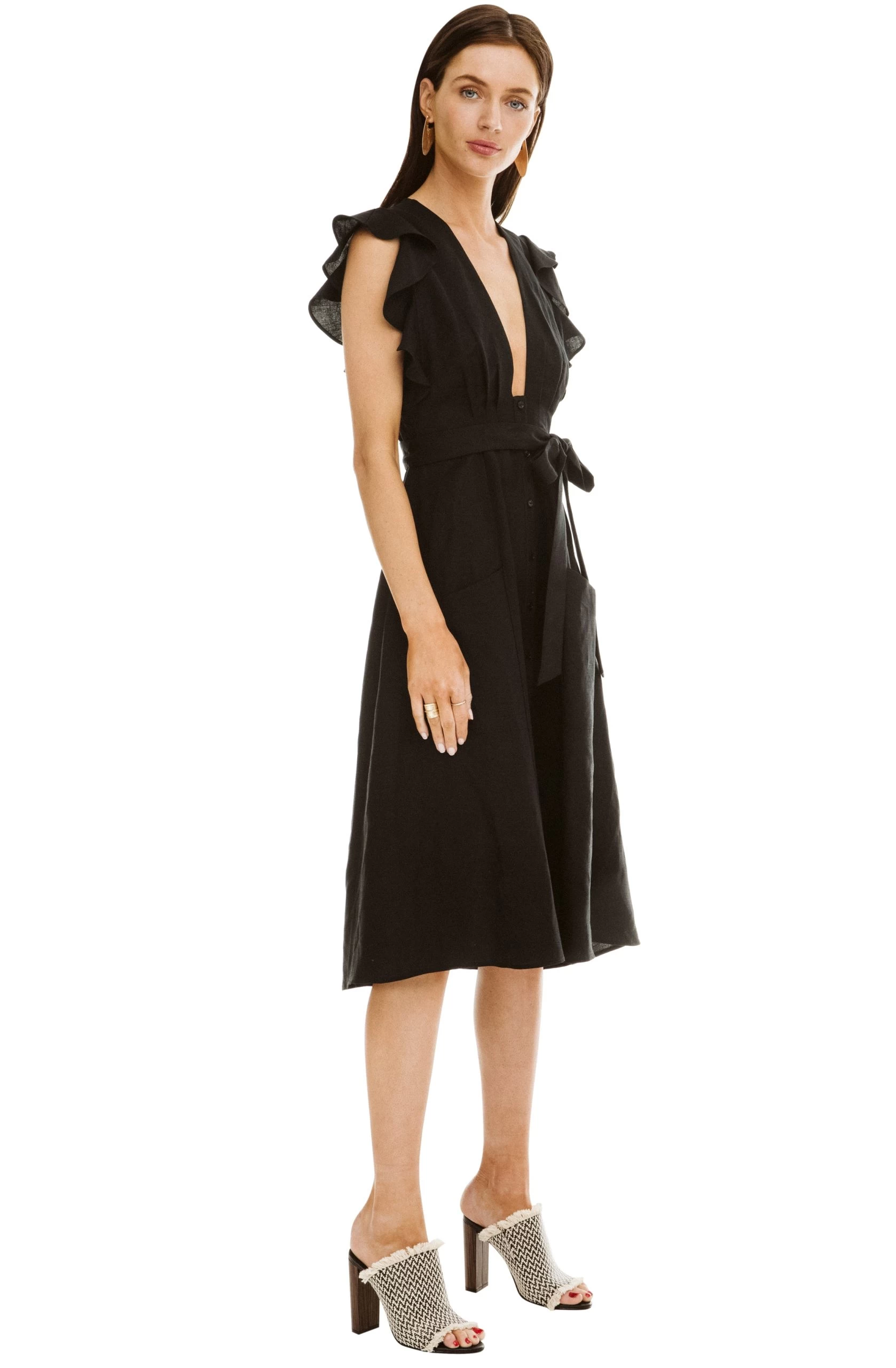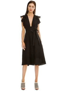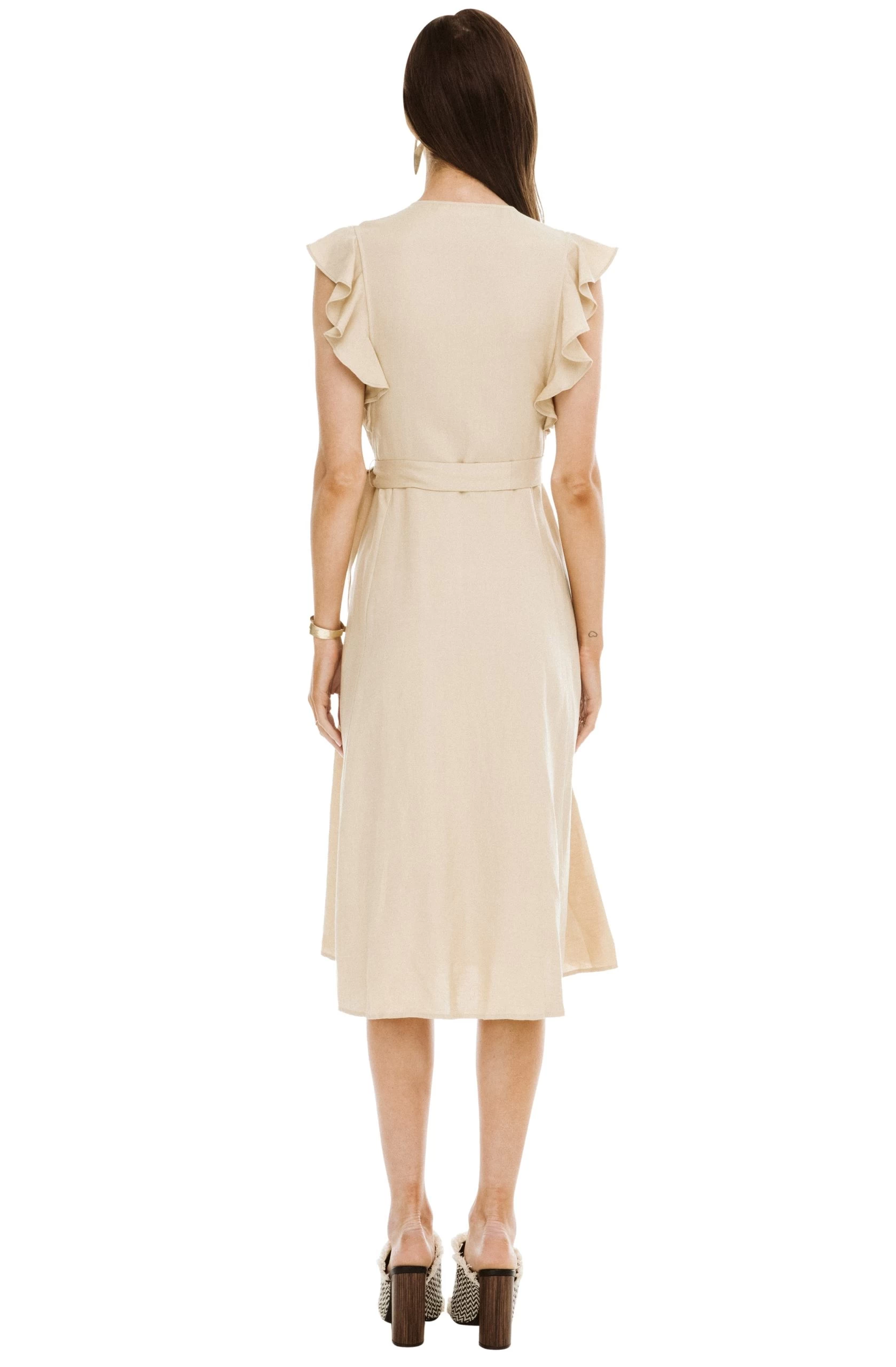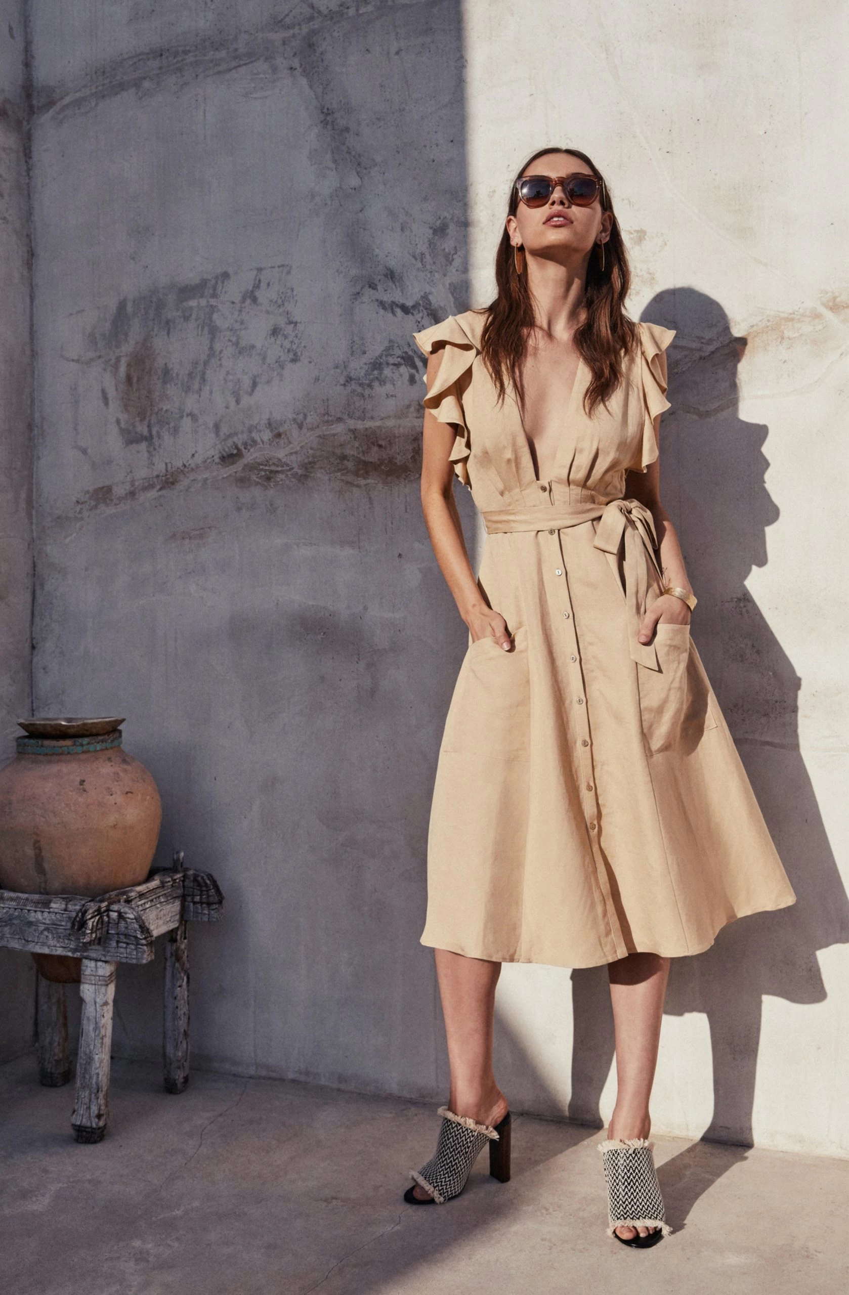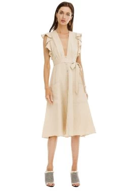 55% Linen / 45% Rayon, Length: 44 5/8″ (Size M), Button Closure, Dry Clean Only, Midi Dress, Ruffle Sleeve, Deep Neckline, Model is Wearing Size S, Model’s Measurements: Height 5’10” // Bust 31″ // Waist 24″ // Hips 33.5″, Fits True to Size, Style#ACDR95113