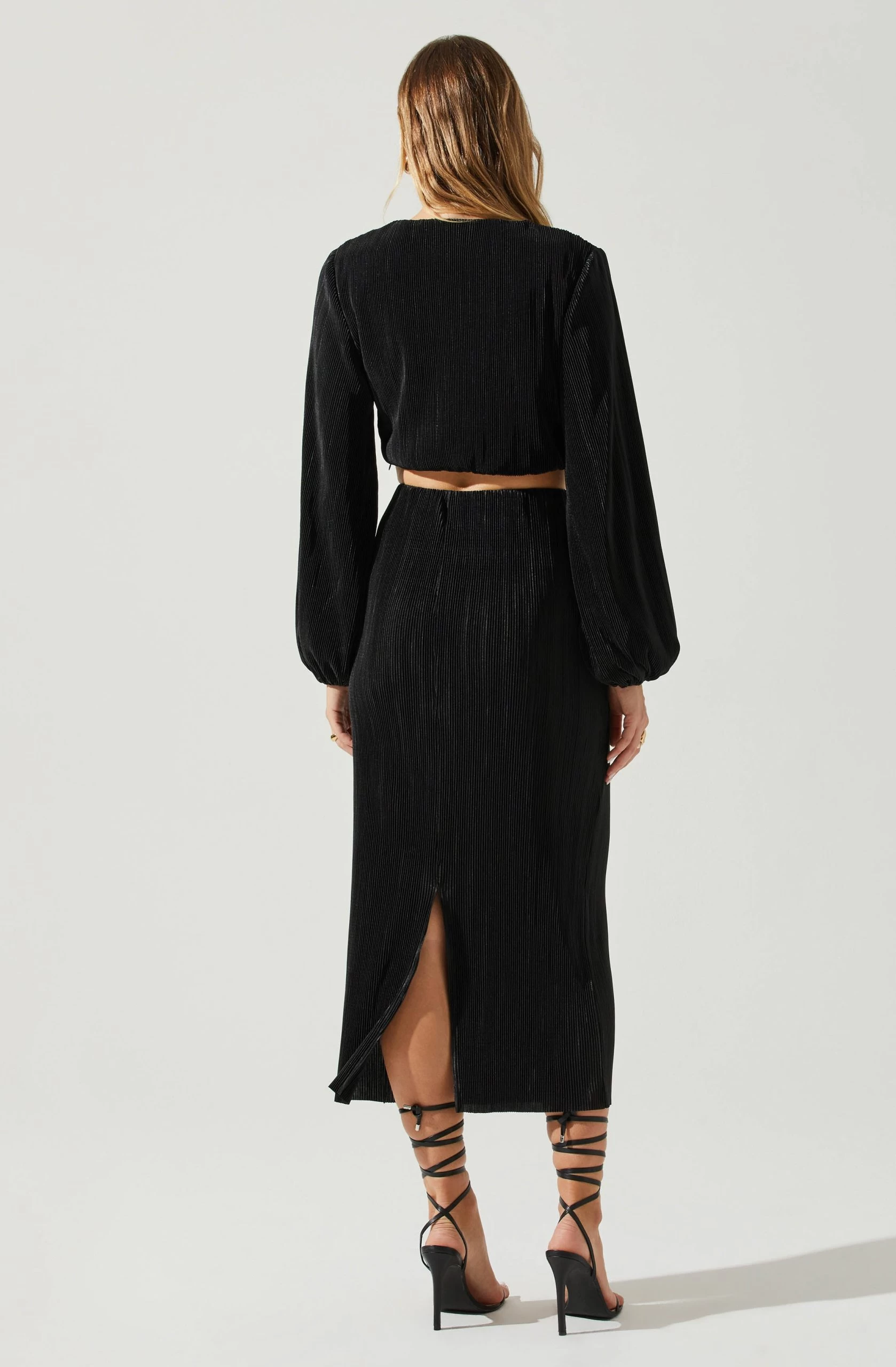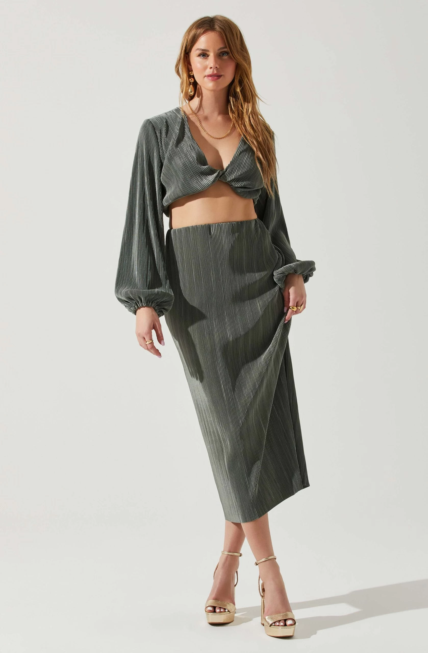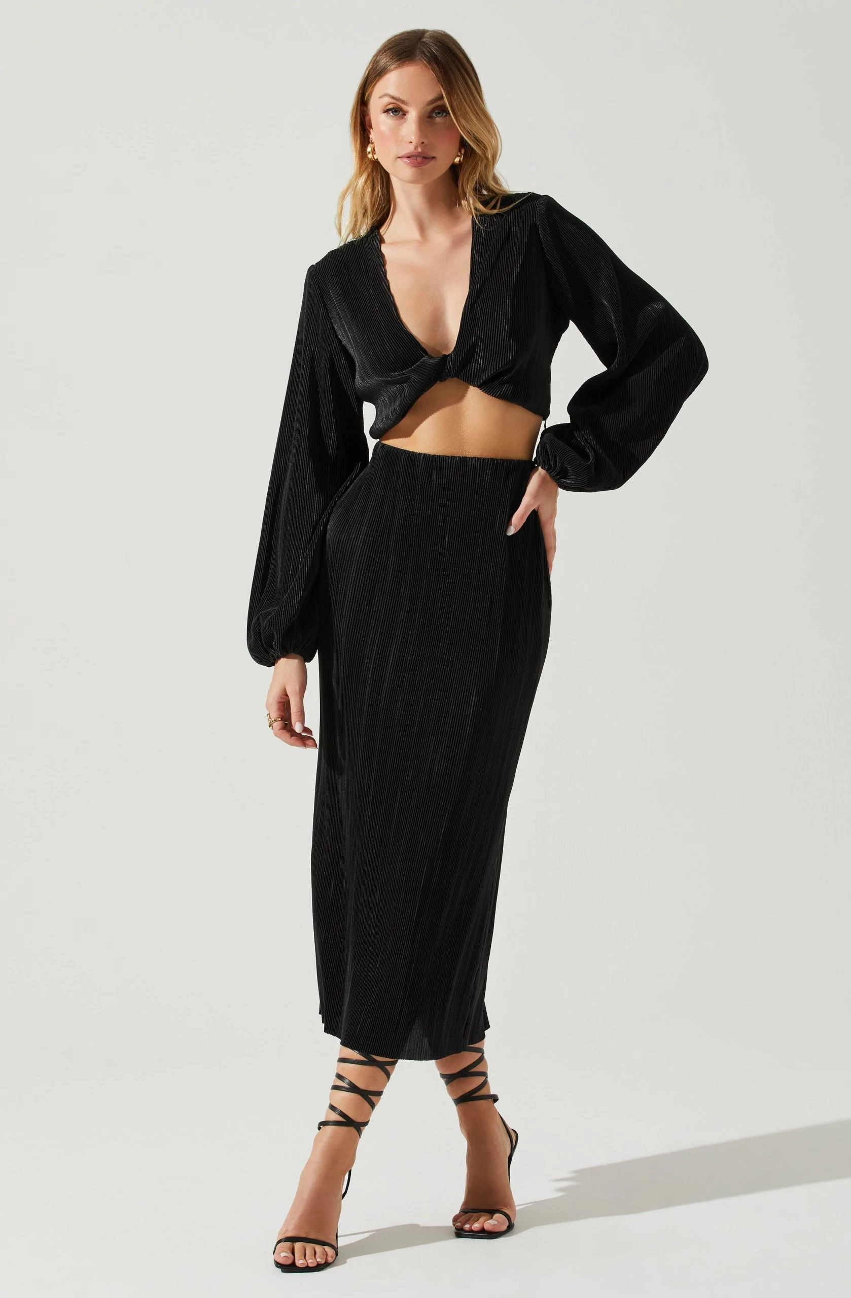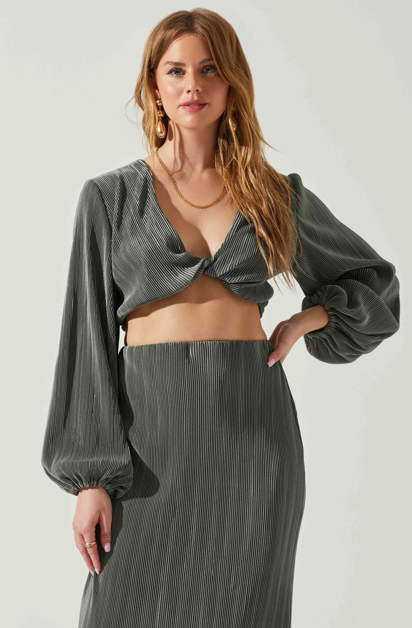 A v-shaped neckline, front twist detail and cropped hem add flirty accents to our Cateleya Top. Pairs perfectly with our Catelaya Skirt as a matching set—essential wearing for your next date night or girls’ night out.