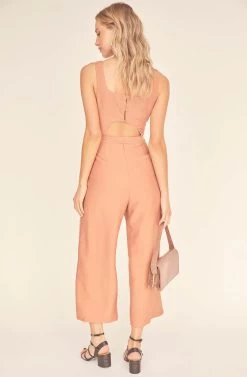 A look that’s done in one. The Chasse jumpsuit features a classic square neckline that descends to a darted bodice. Matching square belt accentuates the waist and leads to wide leg bottoms.