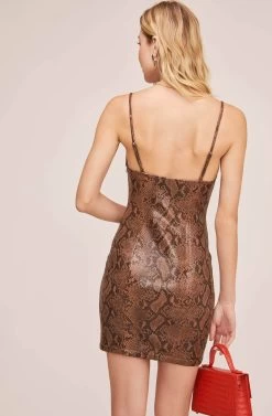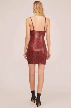 Short and sweet, this faux leather mini dress is your solution for an unexpected night out! Go wild for a plunging bustier front complete with a seamed bodice for added shape. Skinny shoulder straps support this fitted silhouette that descends to a sexy abbreviated hemline! Low cut back.