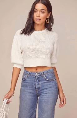 The Cora Sweater is your answer to casual styling this season! It features a textured knit construction with a crew neckline, cropped hemline and short puff sleeves.