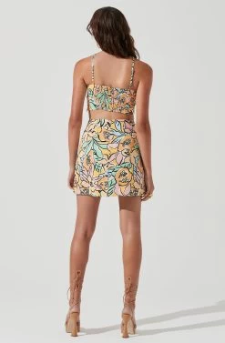 The Covina Skirt features a high waist, small, front slit accent and abbreviated hemline. Tropical print throughout. Concealed back zip closure.