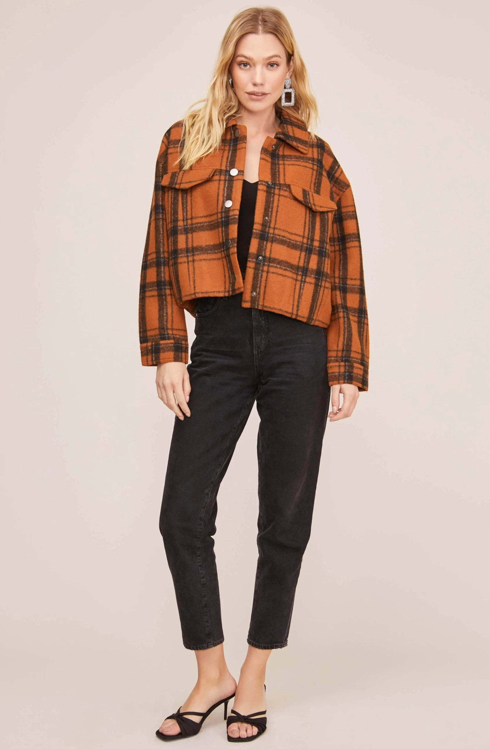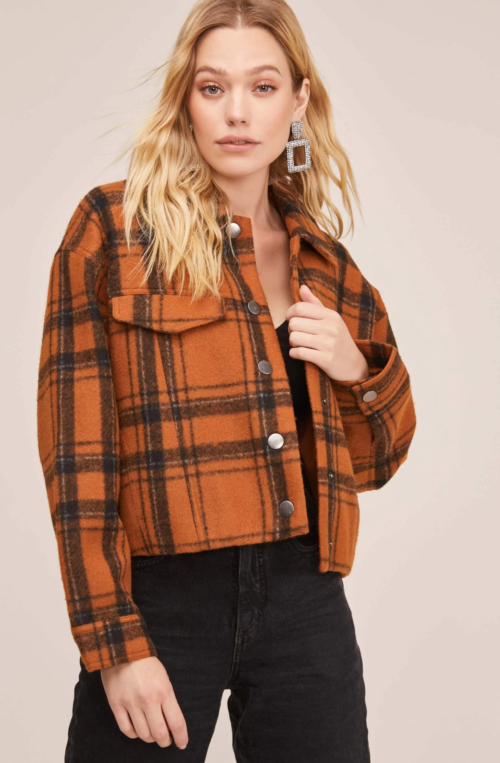 With fall underway, jackets are a must-have! This structured jacket provides all the outfit interest you need. Pointed collar descends to a front button placket. Dual chest flap pocket accents complement the autumnal plaid pattern throughout this style. Long sleeves.