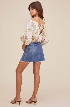 The Danya Floral Top features a subtle-yet-sexy off shoulder neckline that leads to a relaxed bodice and puff sleeves. Open back with self-tie detailing.