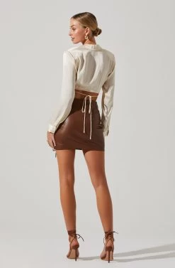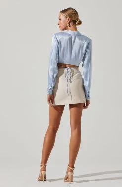 Delphi Satin Pointed Collar Wrapped Tie Waist Top