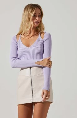 The Estefania Sweater features a ribbed knit construction. Cutout shoulders and long sleeves.