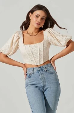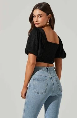 Eyelet Square Neck Balloon Sleeve Bustier Top
