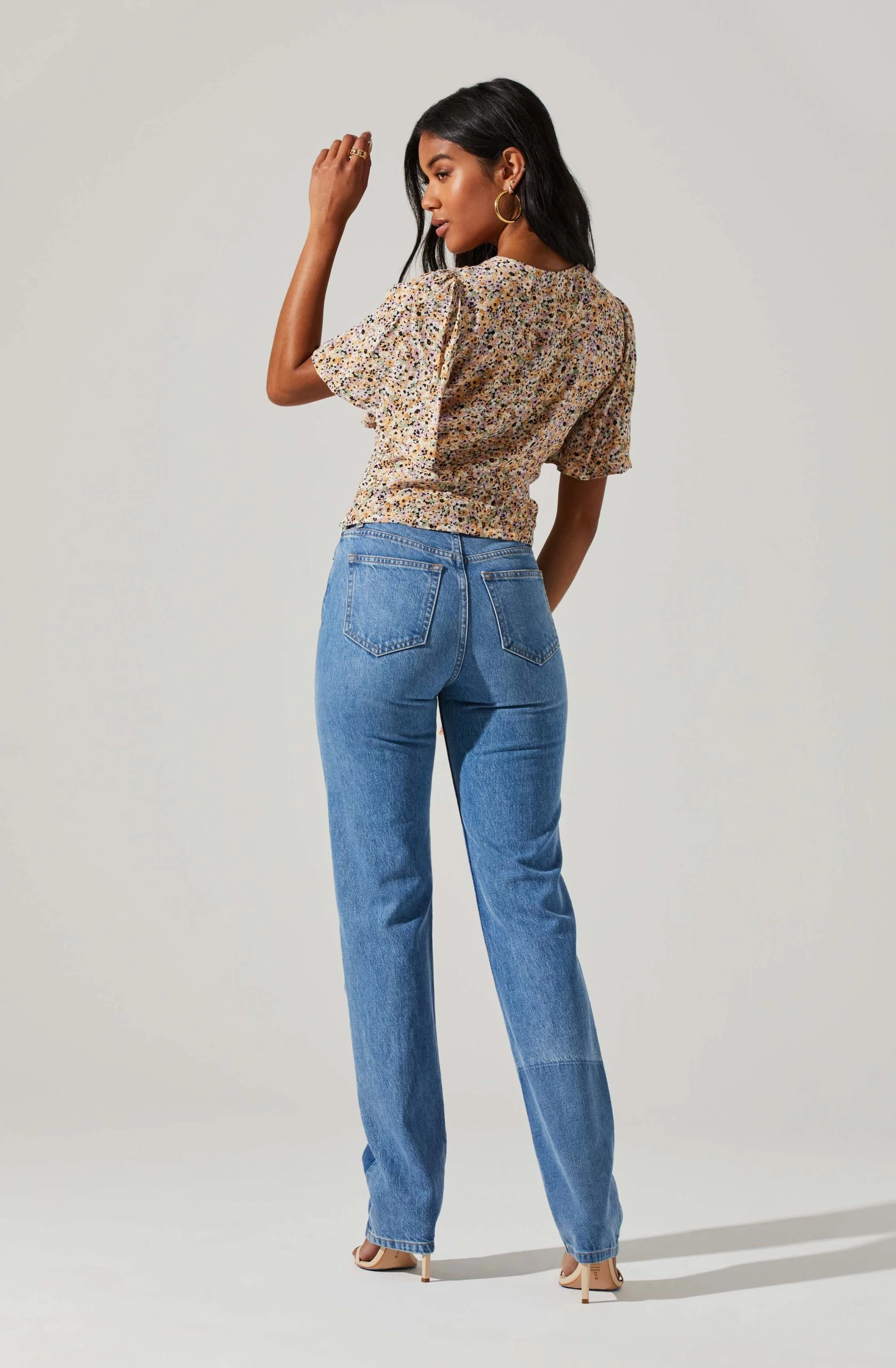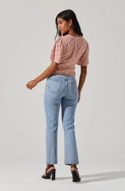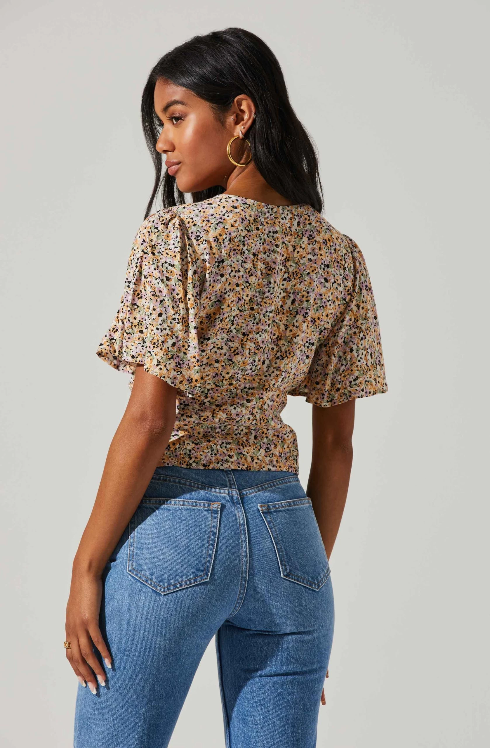 Floral Key Hole Flutter Sleeve Top