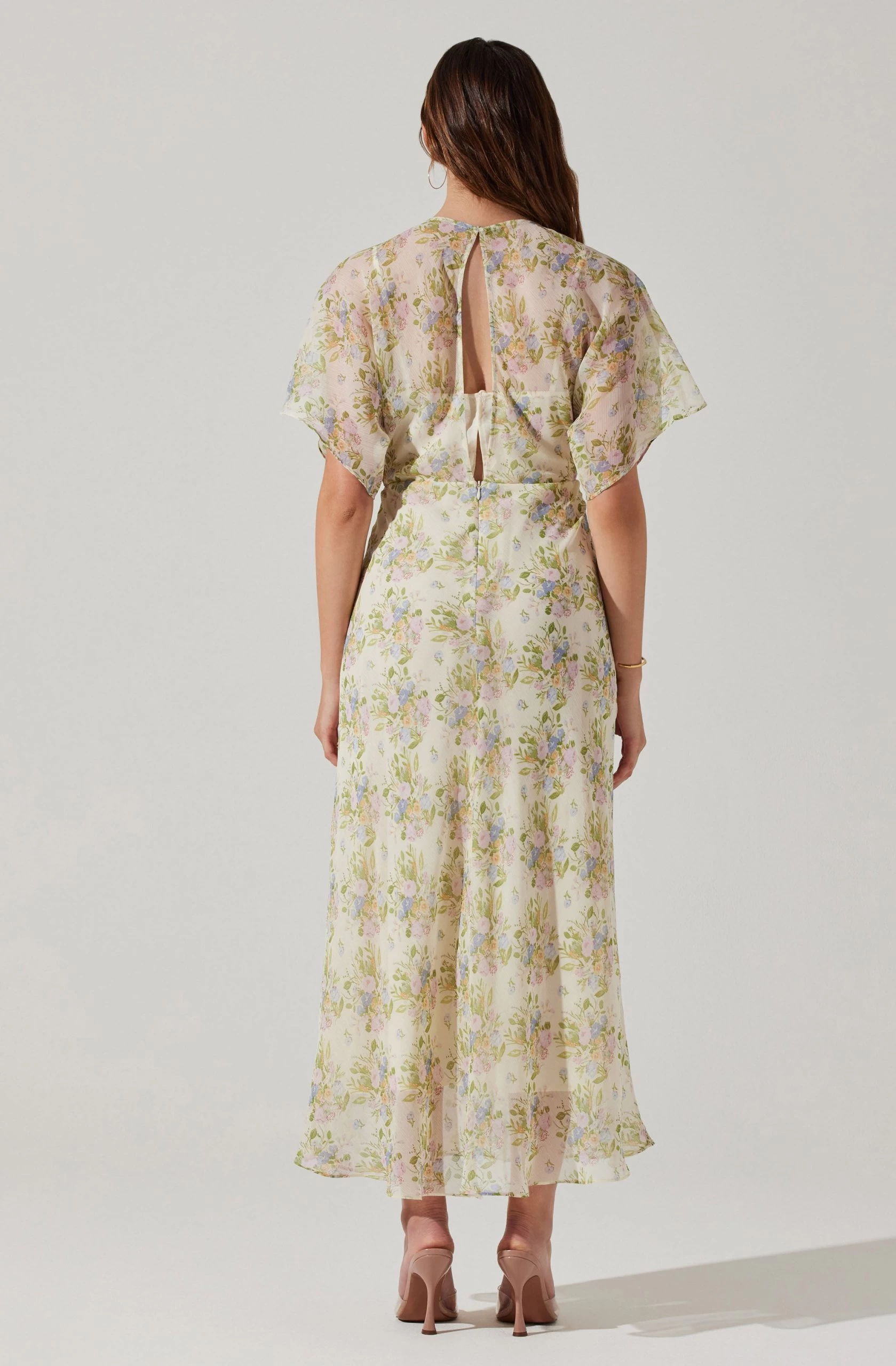 This effortlessly stunning Flutter Sleeve Open Back Maxi Dress is sure to make a lasting impression. Crafted from soft and airy fabric, it features delicate flutter sleeves, an open back, and a long flowy silhouette for an elegant aesthetic. The perfect dress for any special occasion.