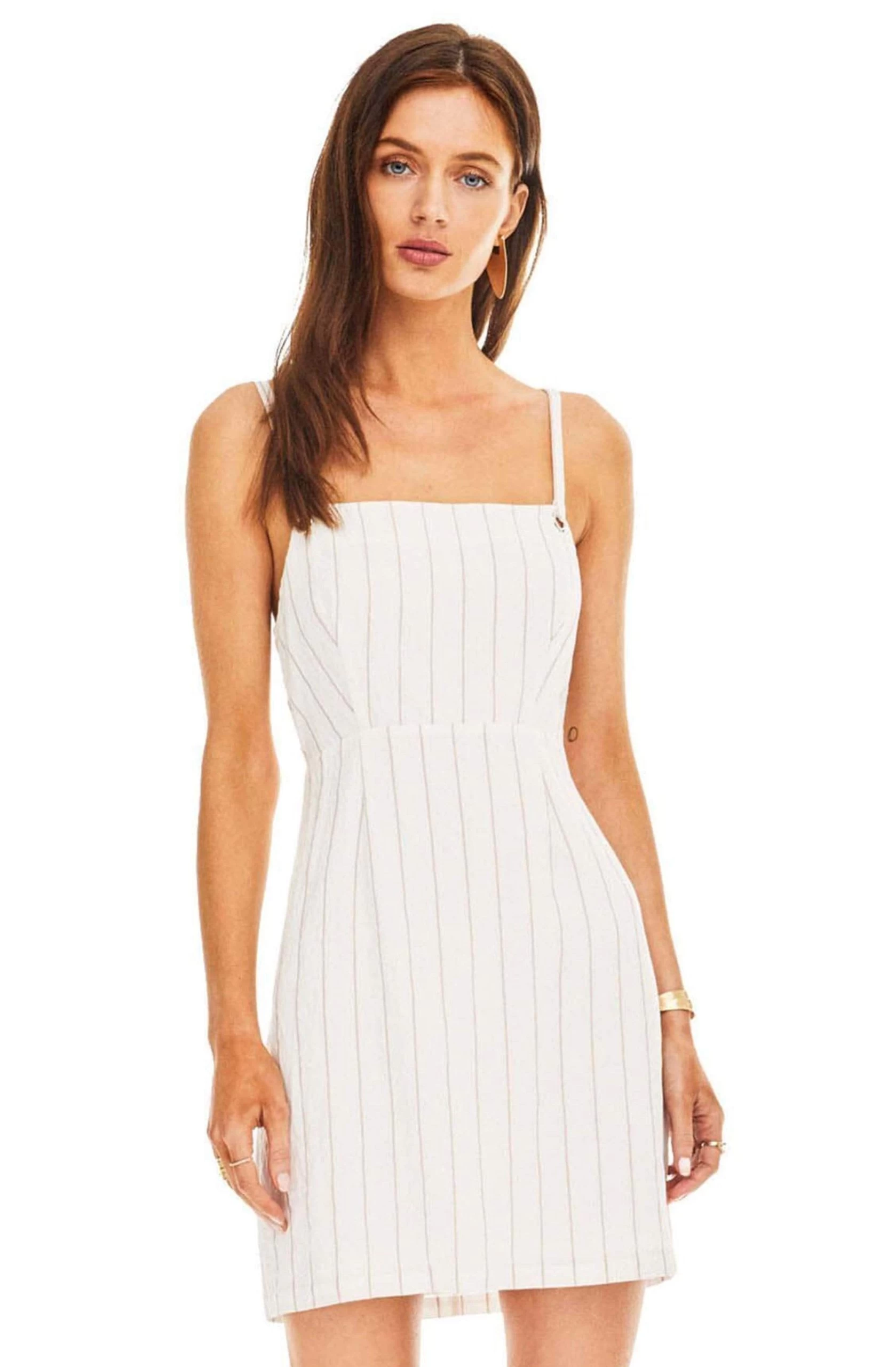 55% Linen / 45% Rayon, Length: 35 3/4″ (Size M), Zipper and Tie Closure, Dry Clean Only, Striped Tie Back Dress, Model is Wearing Size S, Model’s Measurements: Height 5’10” // Bust 31″ // Waist 24″ // Hips 33.5″, Fits True to Size, Style#ACDR95202B