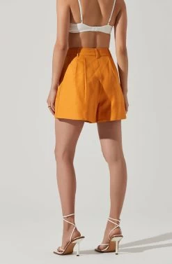 Jacinta High Waist Shorts feature a high waist fit that leads to a plated front. Front zip closure. Belt loops. Functional side pockets.