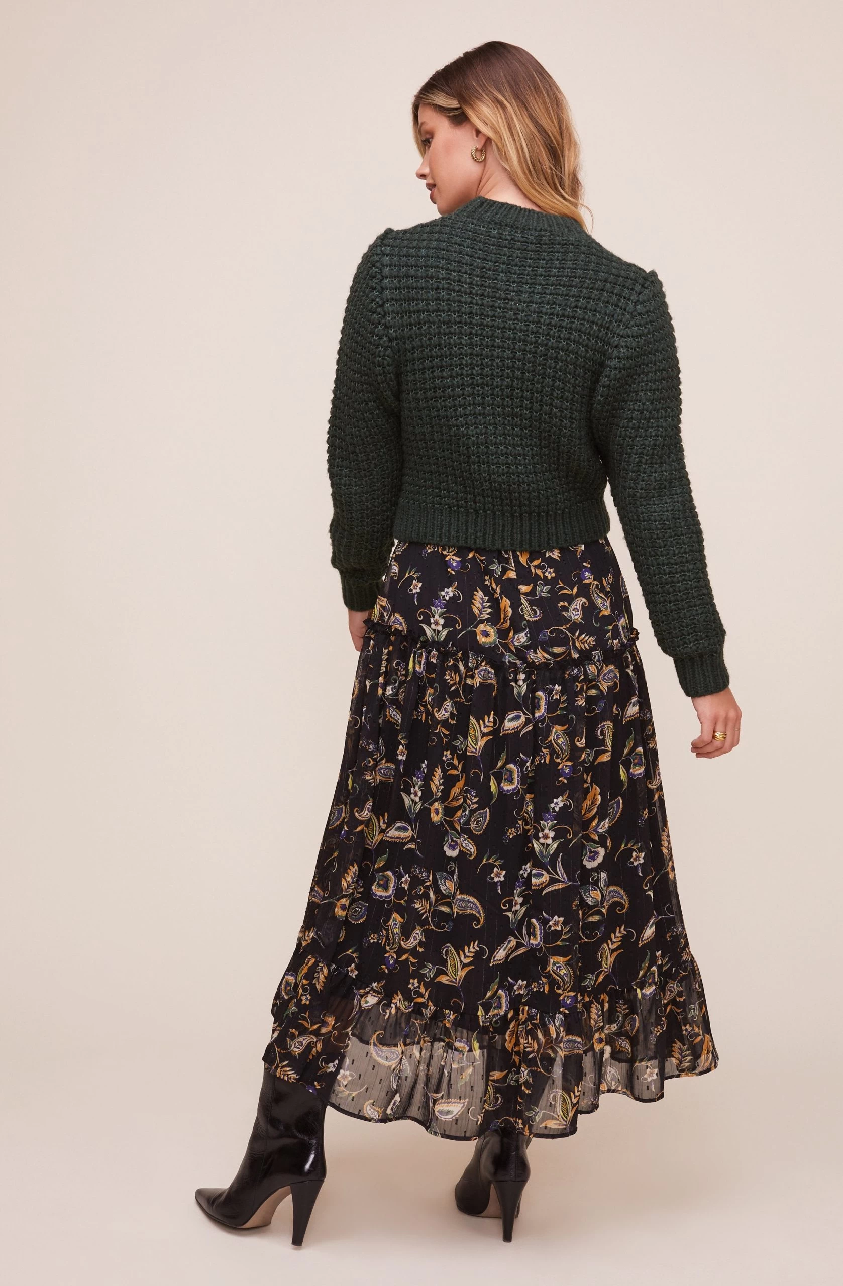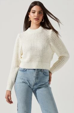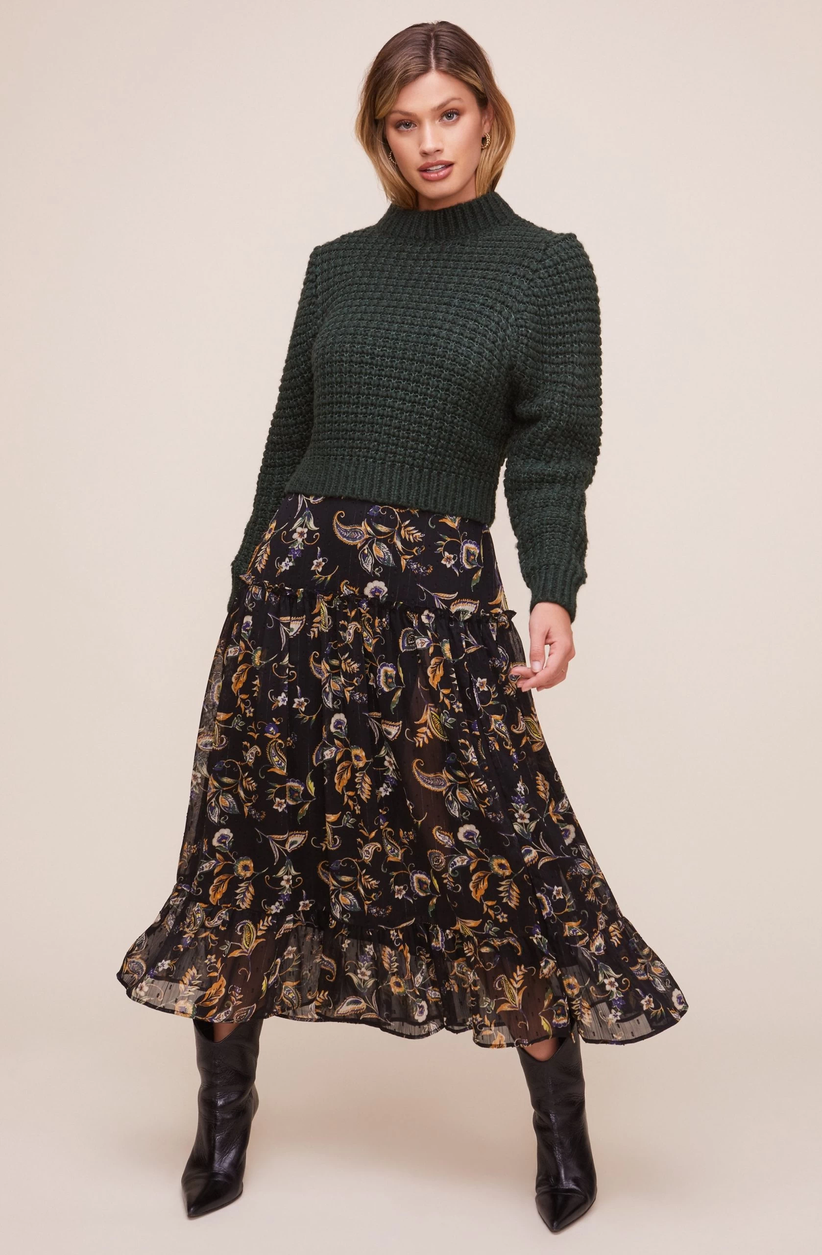 The Kellie sweater combines comfort and fashion in one fell swoop! It features a chunky knit construction that’s perfect for fall! A flattering mock neck collar descends to a relaxed bodice and knit hem. Long sleeves.