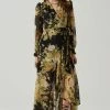 With a playful clash of floral prints, this mini dress is all fun! Keyhole detail leads down to a wrapped bodice. Adjustable spaghetti straps.