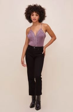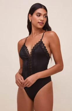 Add a little love lace to the mix! This flirty bodysuit features a plunging neckline that is adorned with an ornate lace trim that leads down to the bodice. Racerback detail. Sleeveless.