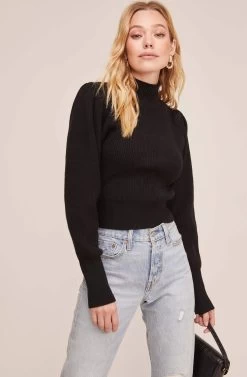 Major sleeve interest is coming your way! This luxe knit sweater features a ribbed construction that accentuates a mock neck collar and long puff sleeves.