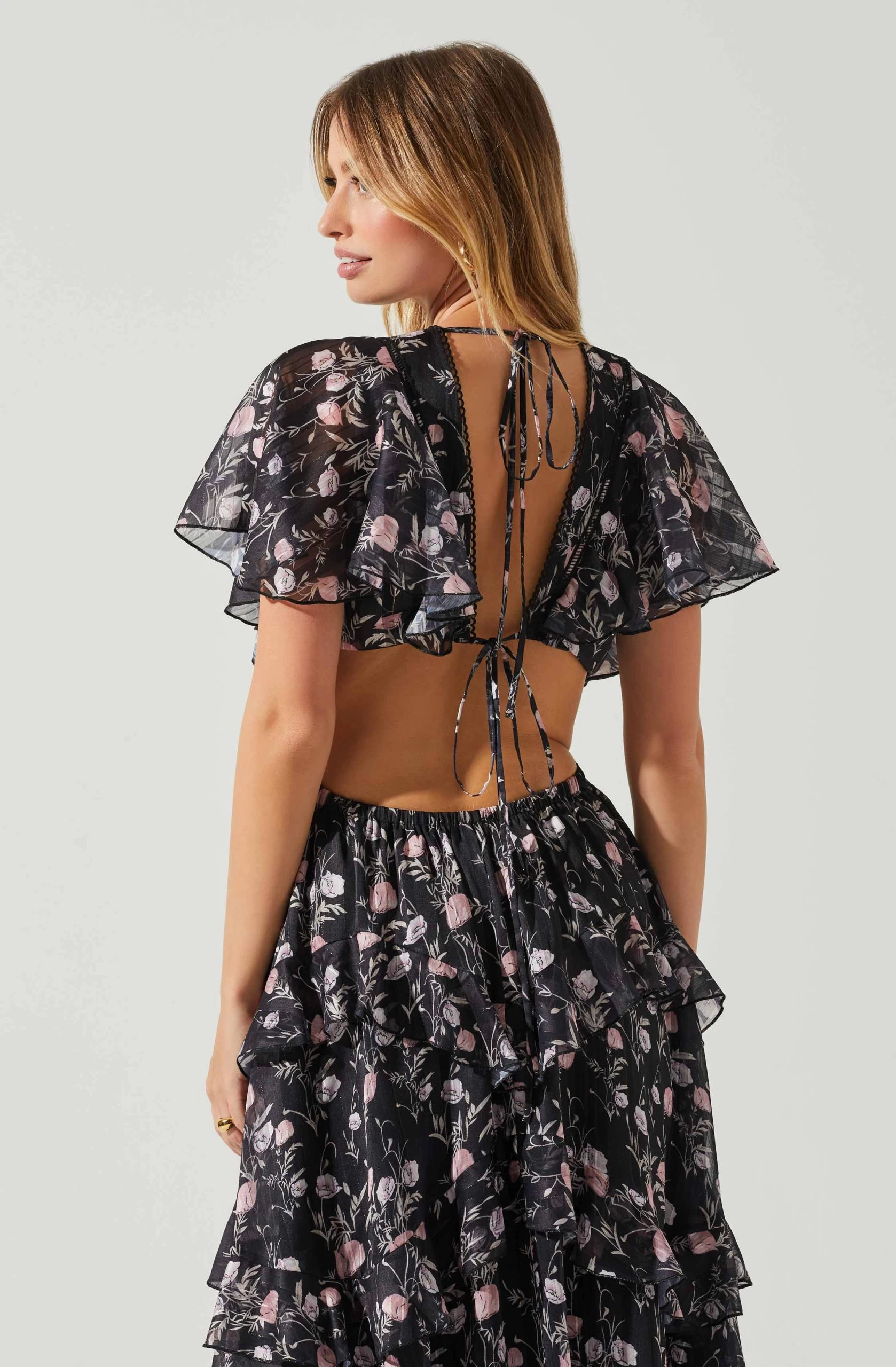 Lucy Flutter Sleeve Floral Cutout Maxi Dress