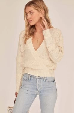Wrap up in cozy goodness! The Madeline Sweater features a V neckline that leads to a wrap front and long sleeves.