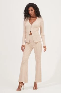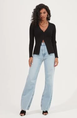 The Maida Sweater features a chic ribbed knit construction with a V neckline that leads to a front button placket. Long sleeves.