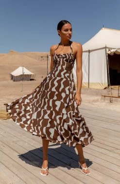 Take your occasion look to the next level in the Mariella Dress. It features an abstract print that makes a bold statement. Adjustable halter neckline leads to a sweetheart neckline and smocked bust. Flowy midi skirt features ruched side pocket accents. Smocked back. Fully lined.