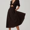 The Meera Dress features a ribbed knit construction that starts with a crew neckline and leads to a bodycon fit and side slit accent. Abbreviated hem. Sleeveless.