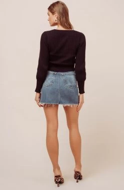 Elevated knits for magical holiday moments. Layer up your outfit with the Mila Sweater. Flattering V neck frames your figure while a fitted bodice gives you a flawless silhouette. Ribbed knit pattern throughout and long puff sleeves for added detail.