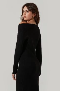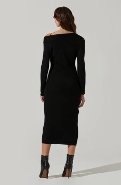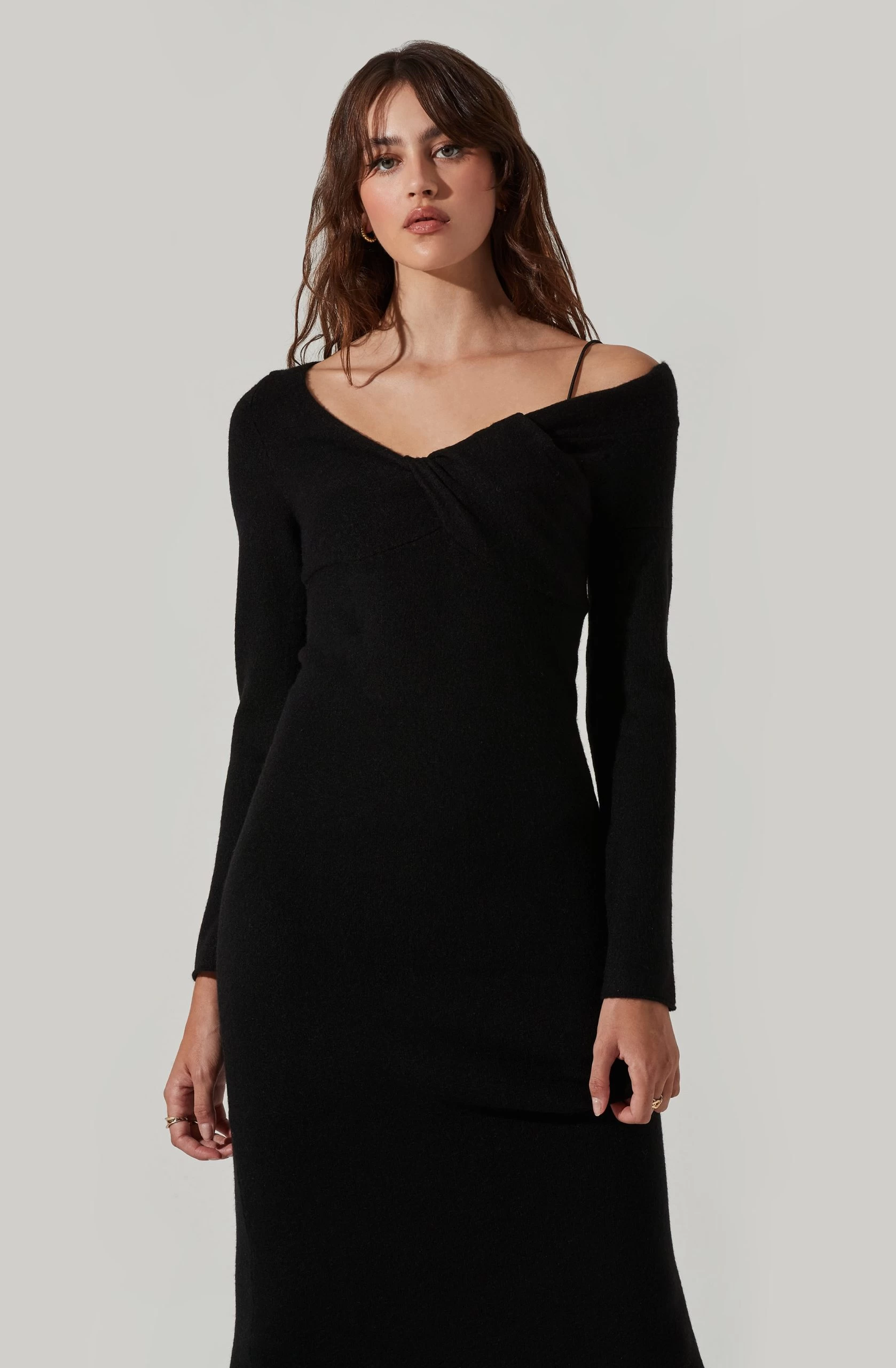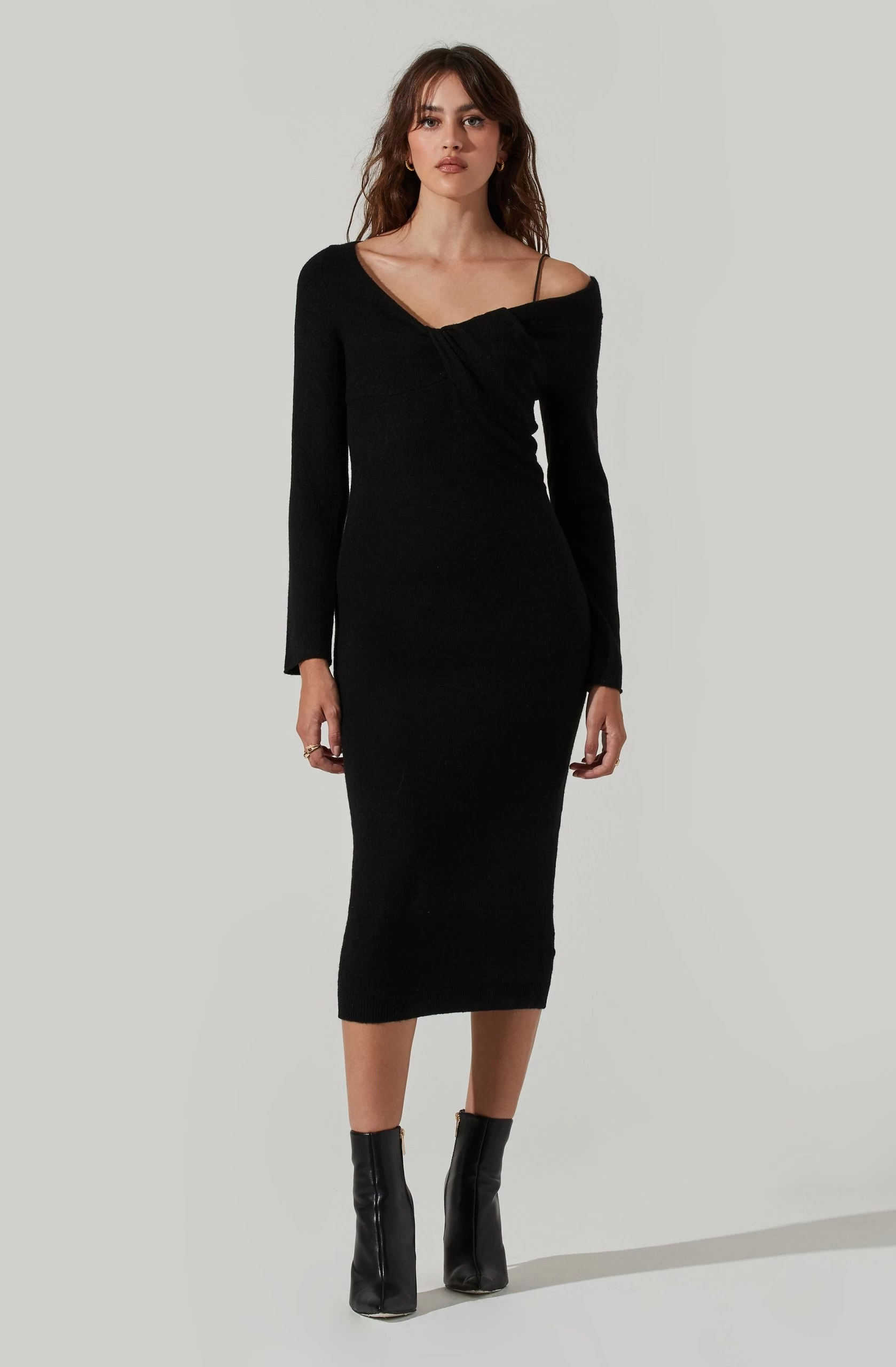 Naya Asymmetrical Shoulder Sweater Midi Dress