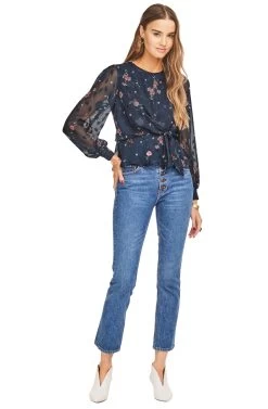 100% Polyester, Length: 23 1/8″ (Size M), Button and Zipper Closure, Dry Clean Only, Floral Tie-front Blouse, Sheer Sleeves, Model is Wearing Size S, Model’s Measurements: Height 5’10” // Bust 34″ // Waist 24″ // Hips 34″, Fits True to Size, Style#ACT15074