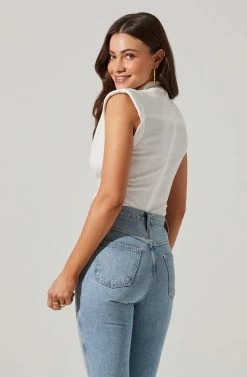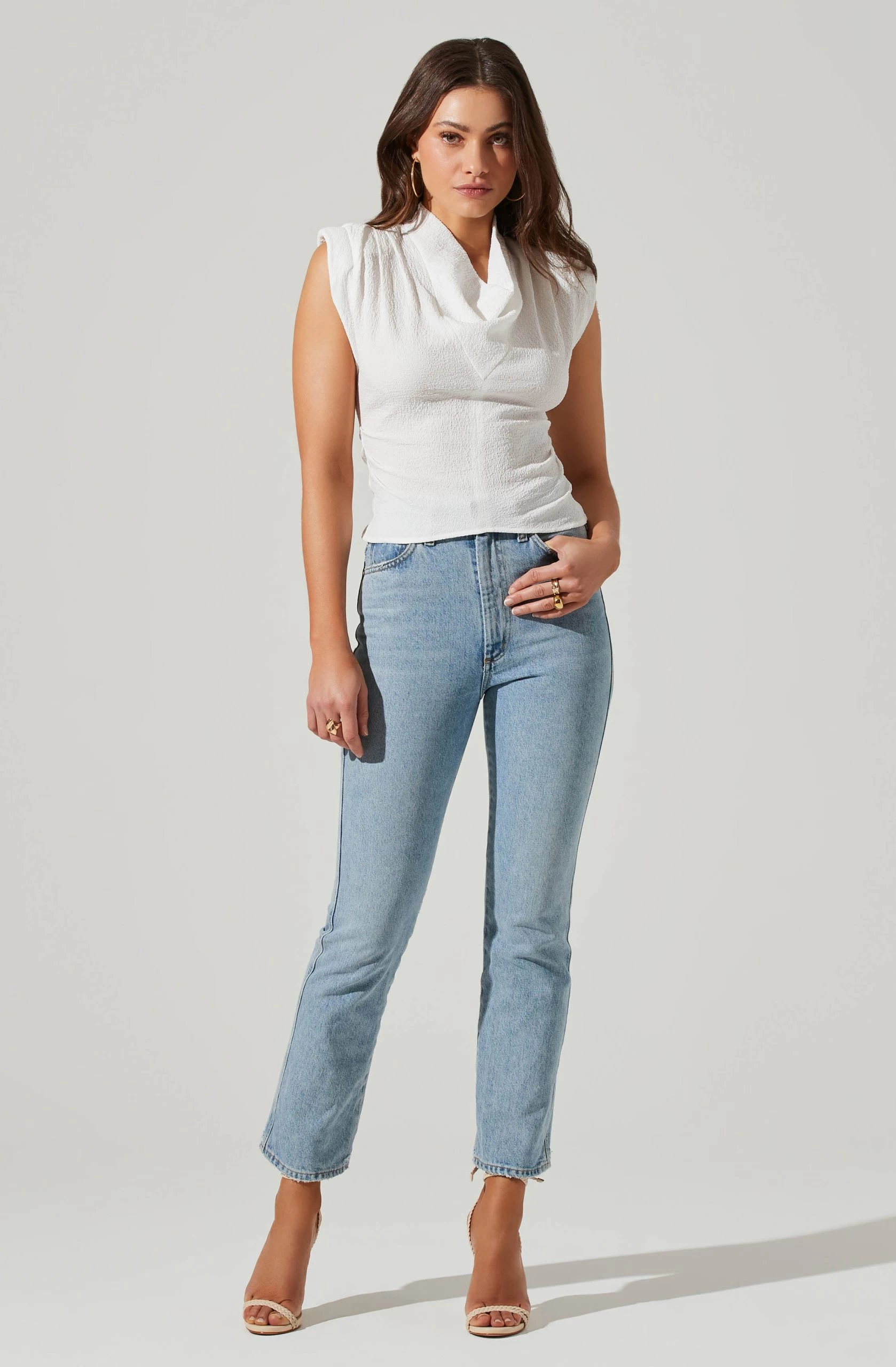 Pleated Cowl Neck Power Shoulder Tank