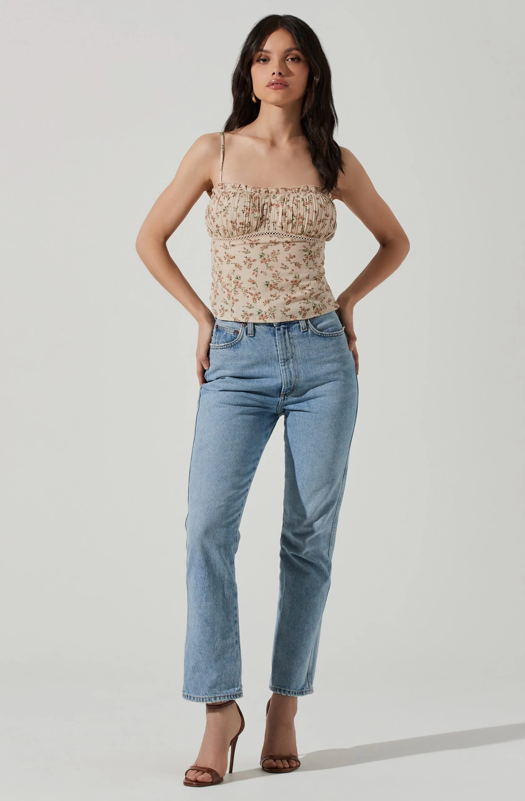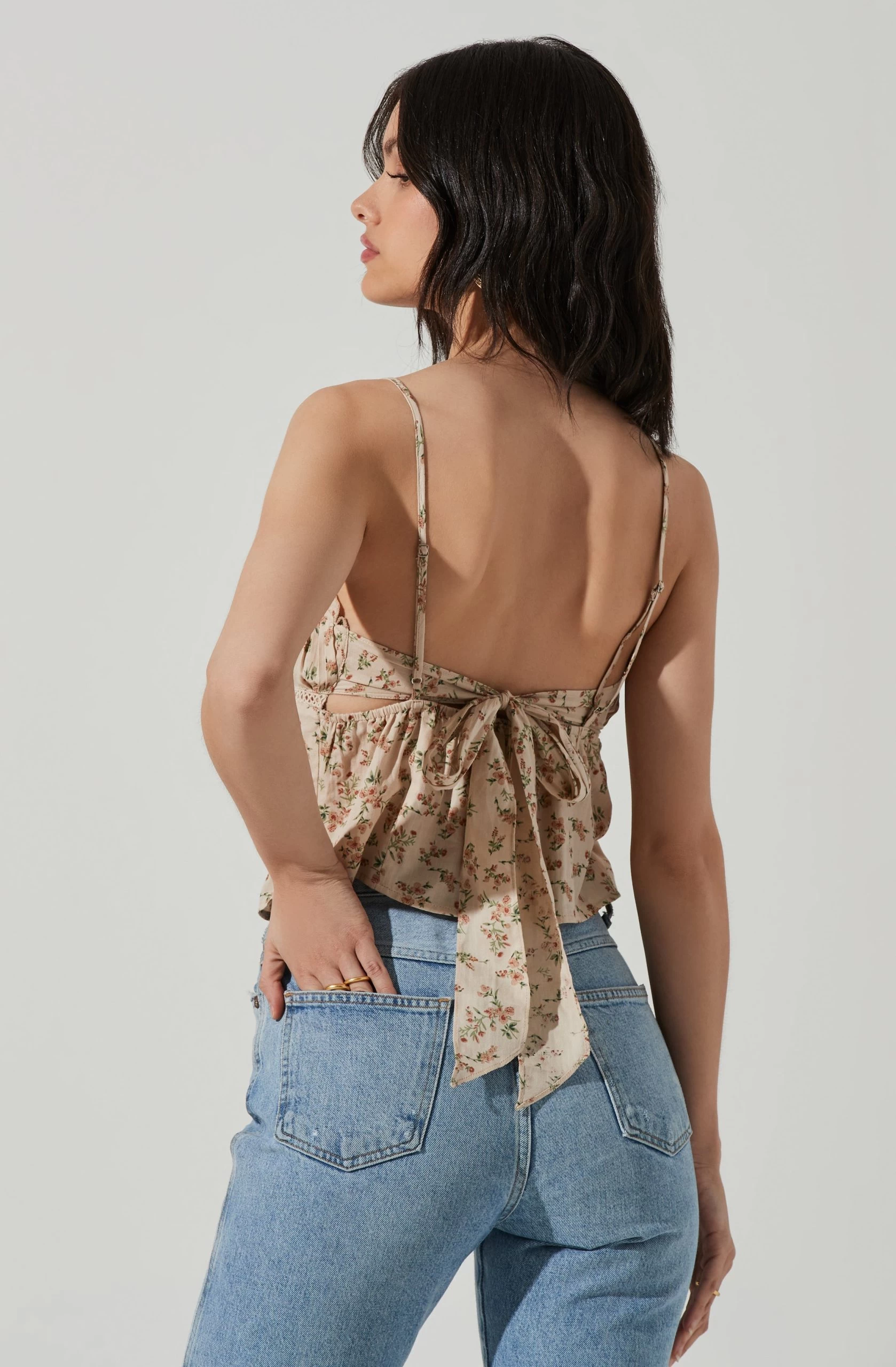 Pleated Floral Linen Cami