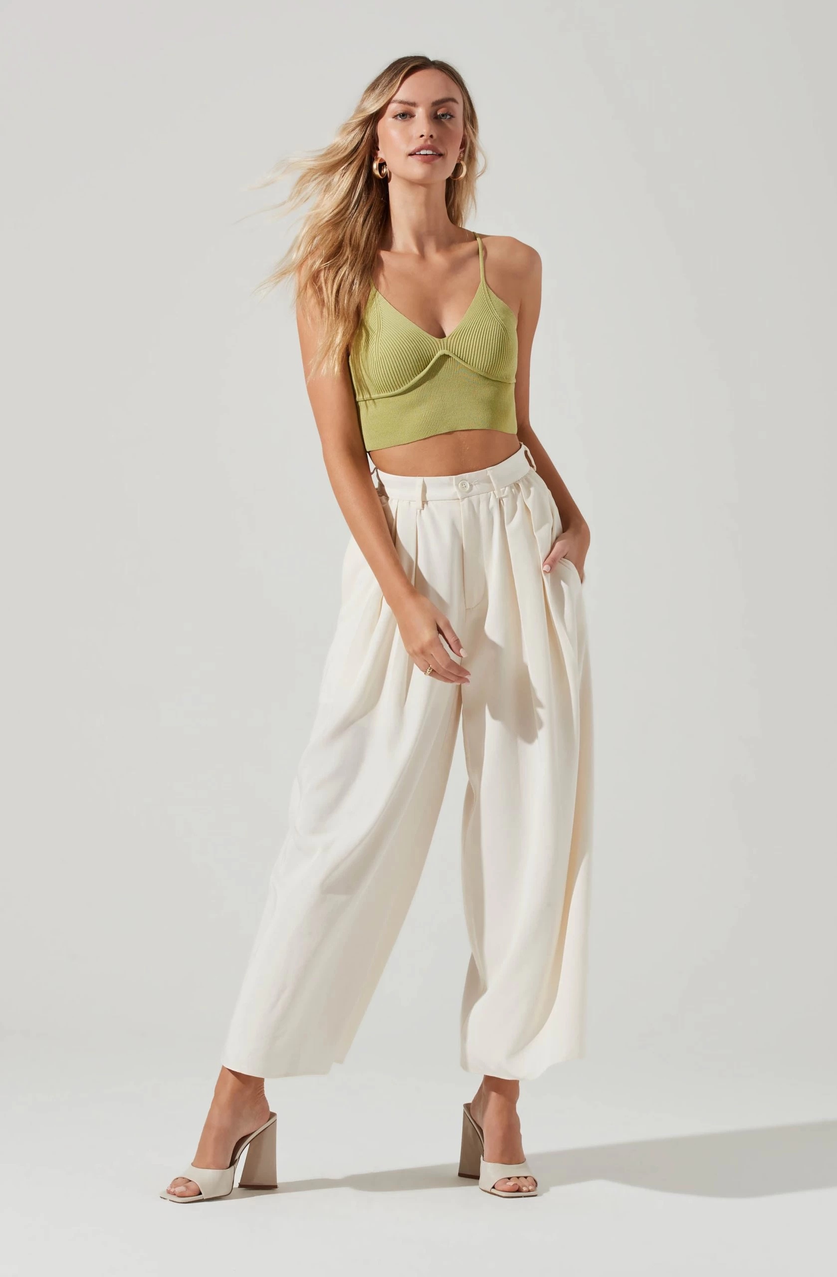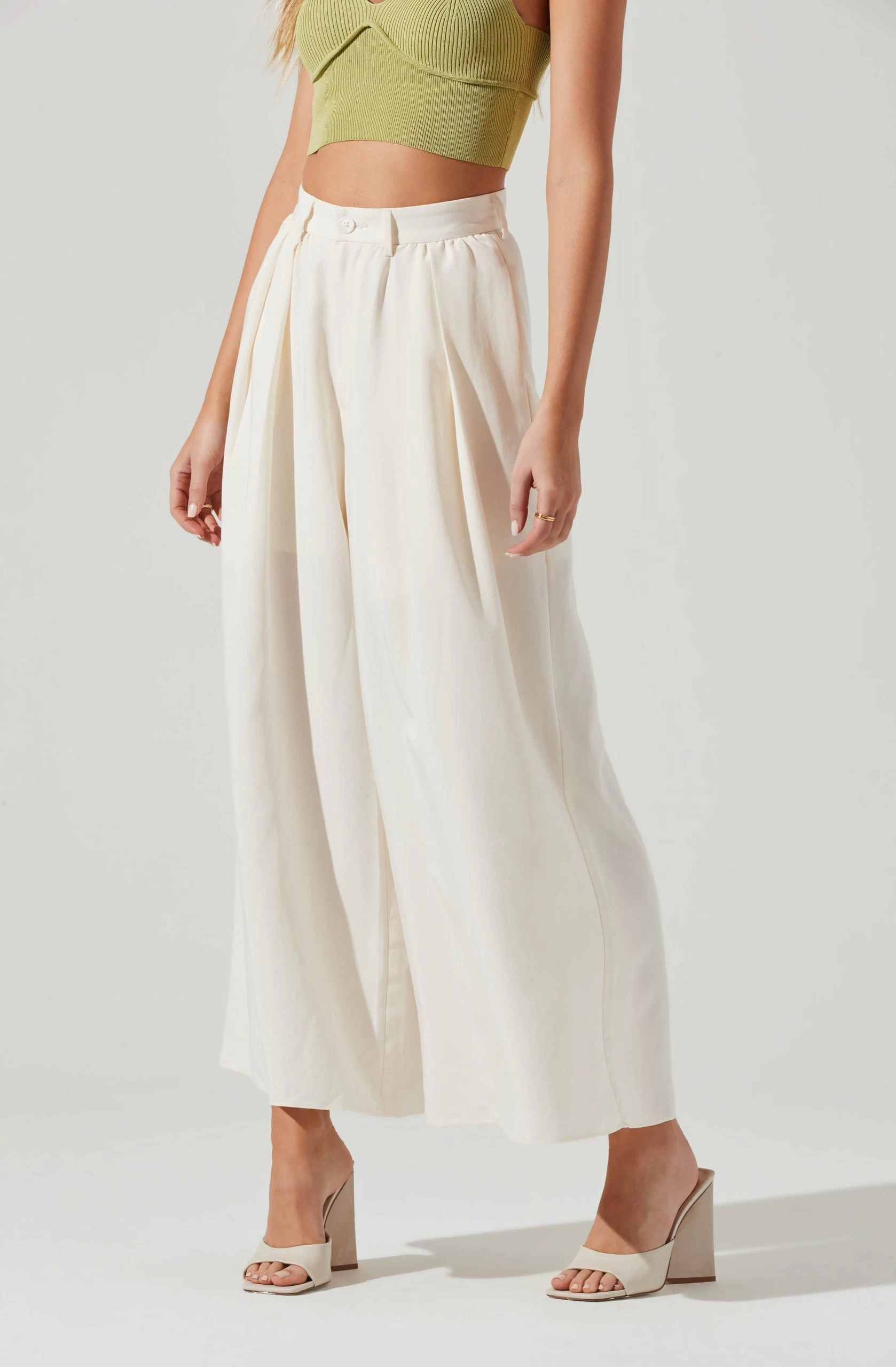 Chic and sophisticated. This trouser style features a high waist with functional belt loops. Pleated front features hip pockets. Wide leg silhouette. Back pocket accent. Partially lined.