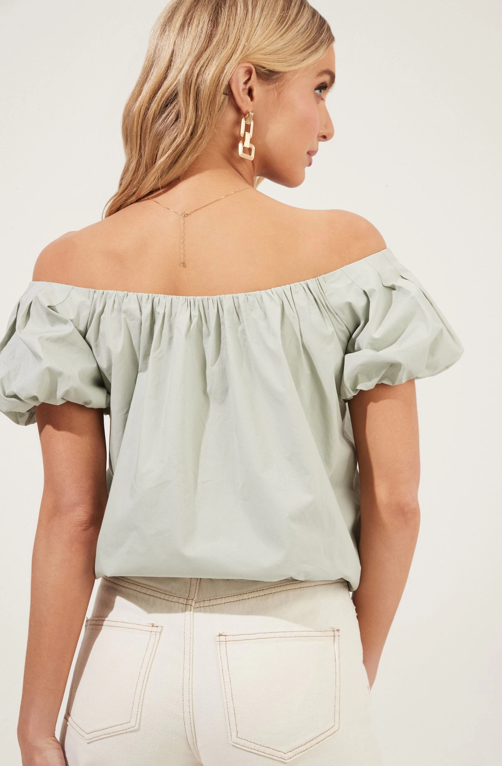 Poplin Off The Shoulder Short Sleeve Top