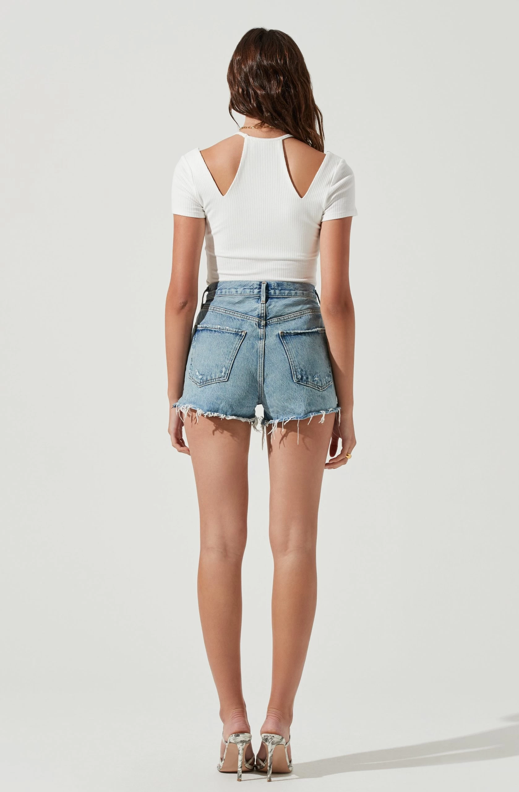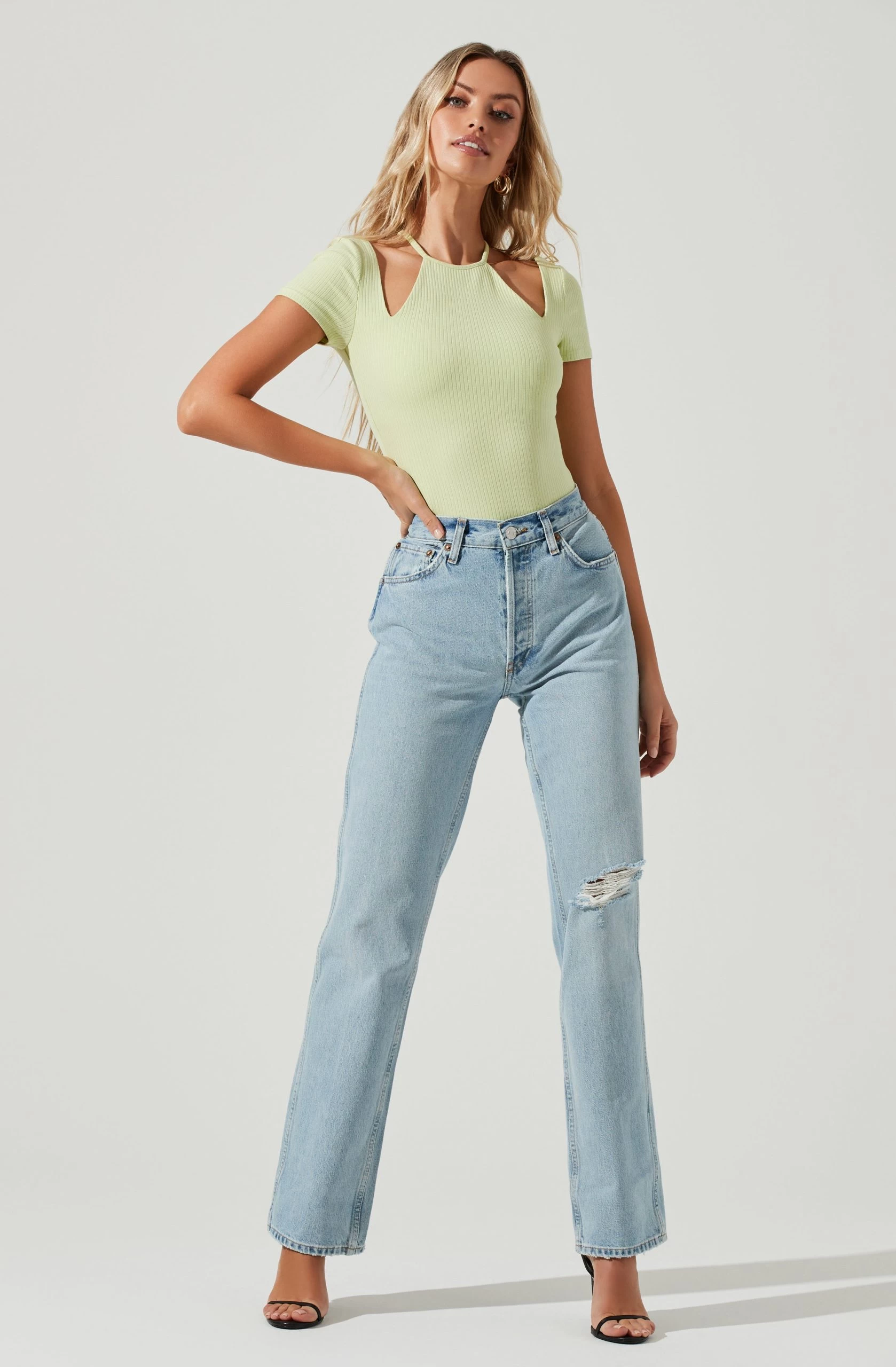 Reedley Halter Neck Cutout Short Sleeve Bodysuit