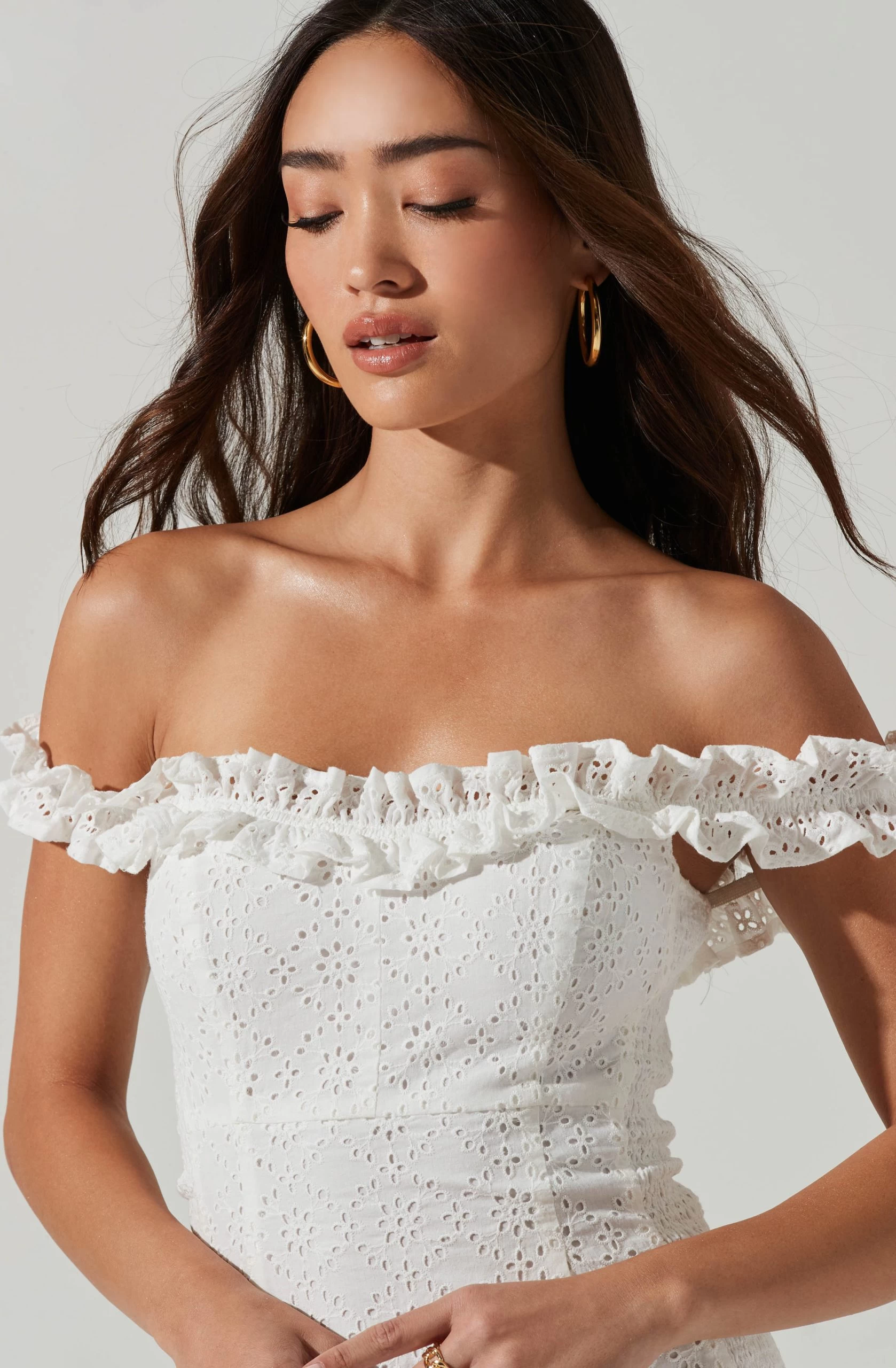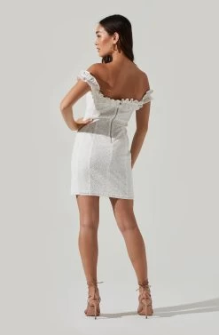 Your bachelorette party dress has arrived! The Renanta Dress features a sweet pointelle design with a square neckline and ruffle trim. Darted bodice. Abbreviated hem. Exposed back zip closure.
