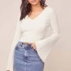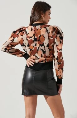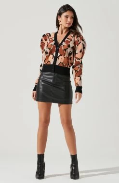 The Romilly Cardigan features a soft knit construction. Contrast trim throughout. V neckline leads to a buttoned front. Puff sleeves.