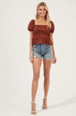 Ruched Ruffle Short Sleeve Top