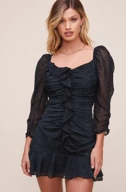 It’s all about fall for the Sephra dress. This silhouette features a square neckline that leads to a shirred bodice with a cascading ruffle trim detail along the front. Pleated mini skirt. Long sheer sleeves with shirred detailing.
