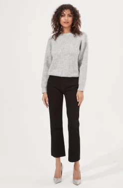 The Serena Sweater features a crew neckline that leads to a rhinestone embellished bodice. Open back. Long sleeves.