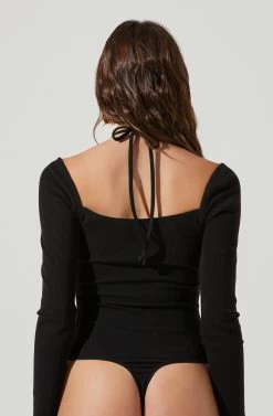 Solene Shoulder Cutout Halter Long Sleeve Bodysuit