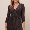 This satin midi skirt features a tie waist accent that leads to ruching along the hip and a side slit accent.