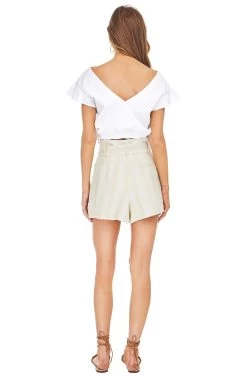 60% Linen 40% Cotton, Bottom Lining, Inseam Length: 2 3/4″ (Size M), Dry Clean Only, Model is Wearing Size S, Model’s Measurements: Height 5’10” // Bust 32″ // Waist 24″ // Hips 34″, Fits True to Size, Style#ACP6370
