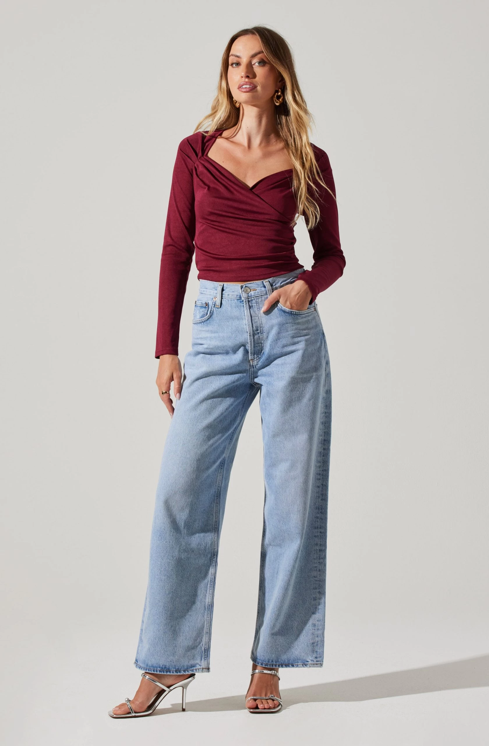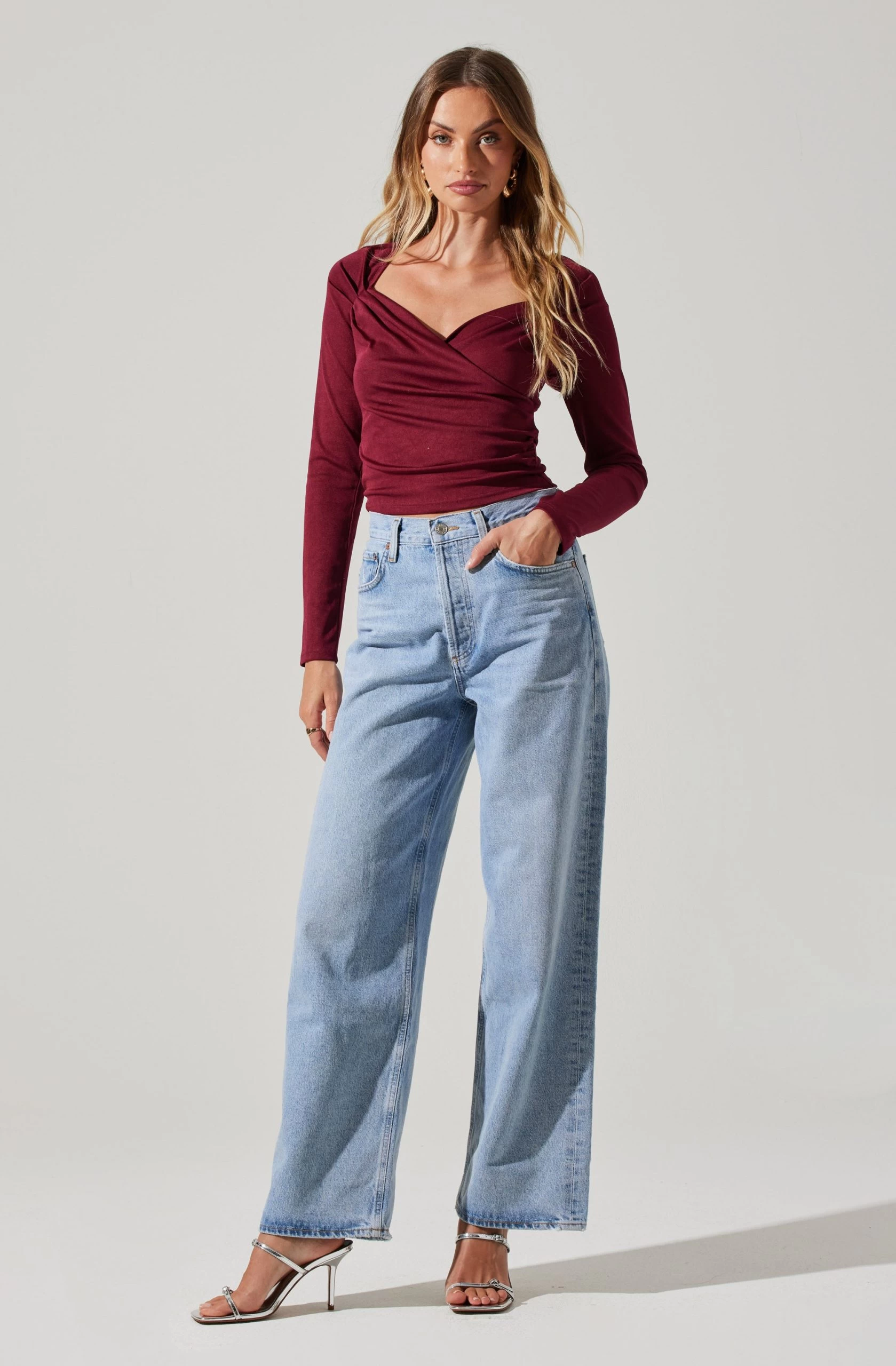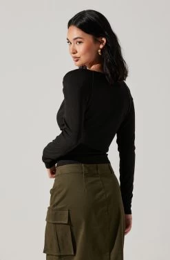 Soft fabric makes this Surplice Long Sleeve Knit Top luxurious with a flattering silhouette for a sophisticated look and all-day comfort.