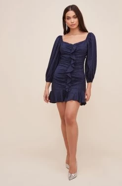 You’re a sweetheart! This mini dress features a sweetheart neckline that leads to a ruched front with a ruffle accent. Ruffle mini skirt. 3/4 puff sleeves.