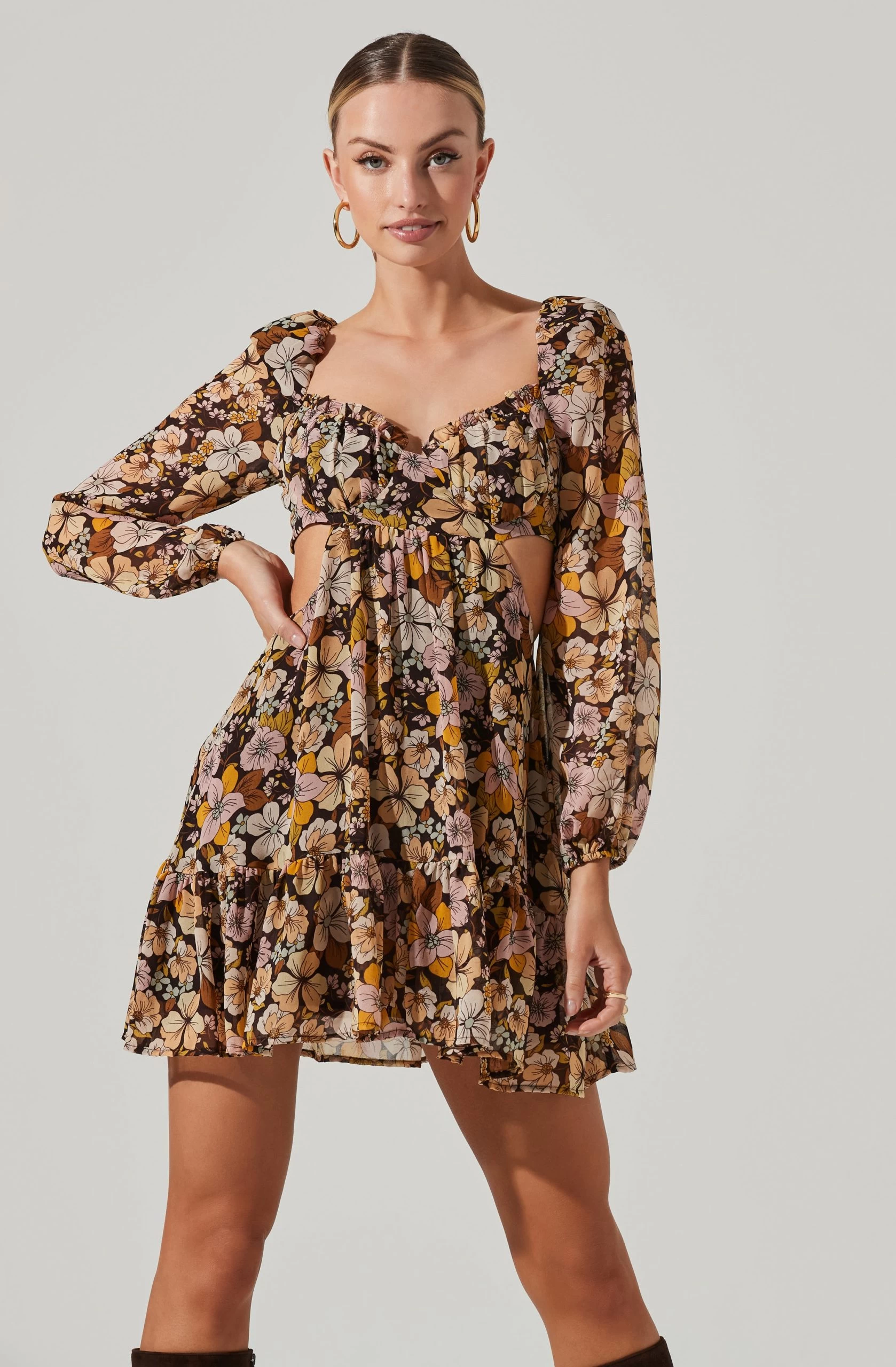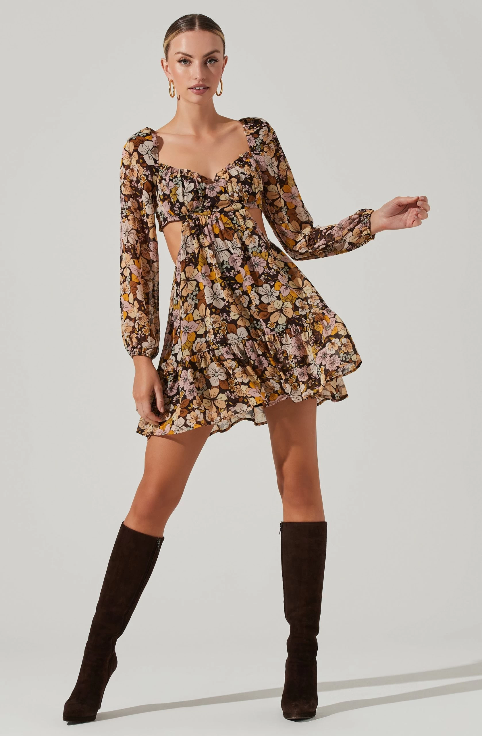 Teyla Floral Cutout Long Sleeve Mini Dress