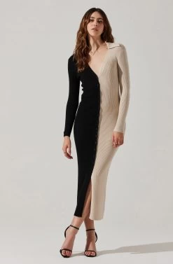 Two Toned Long Sleeve Midi Sweater Dress