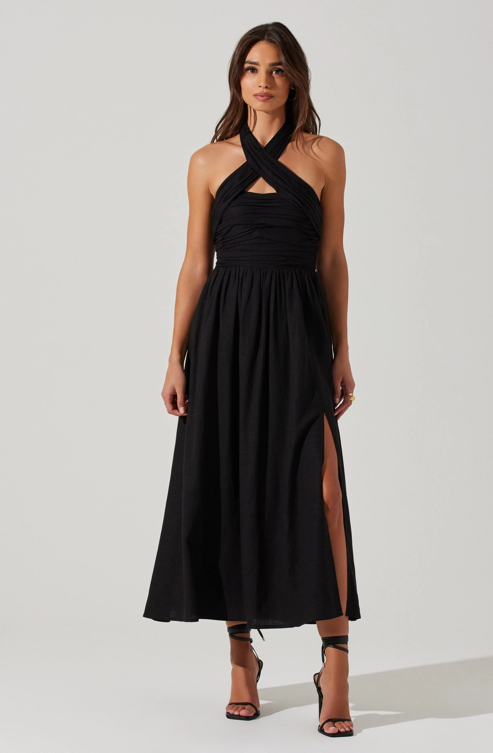 Be the first to review “Zaria Pleated Halter Midi Dress” Cancel reply