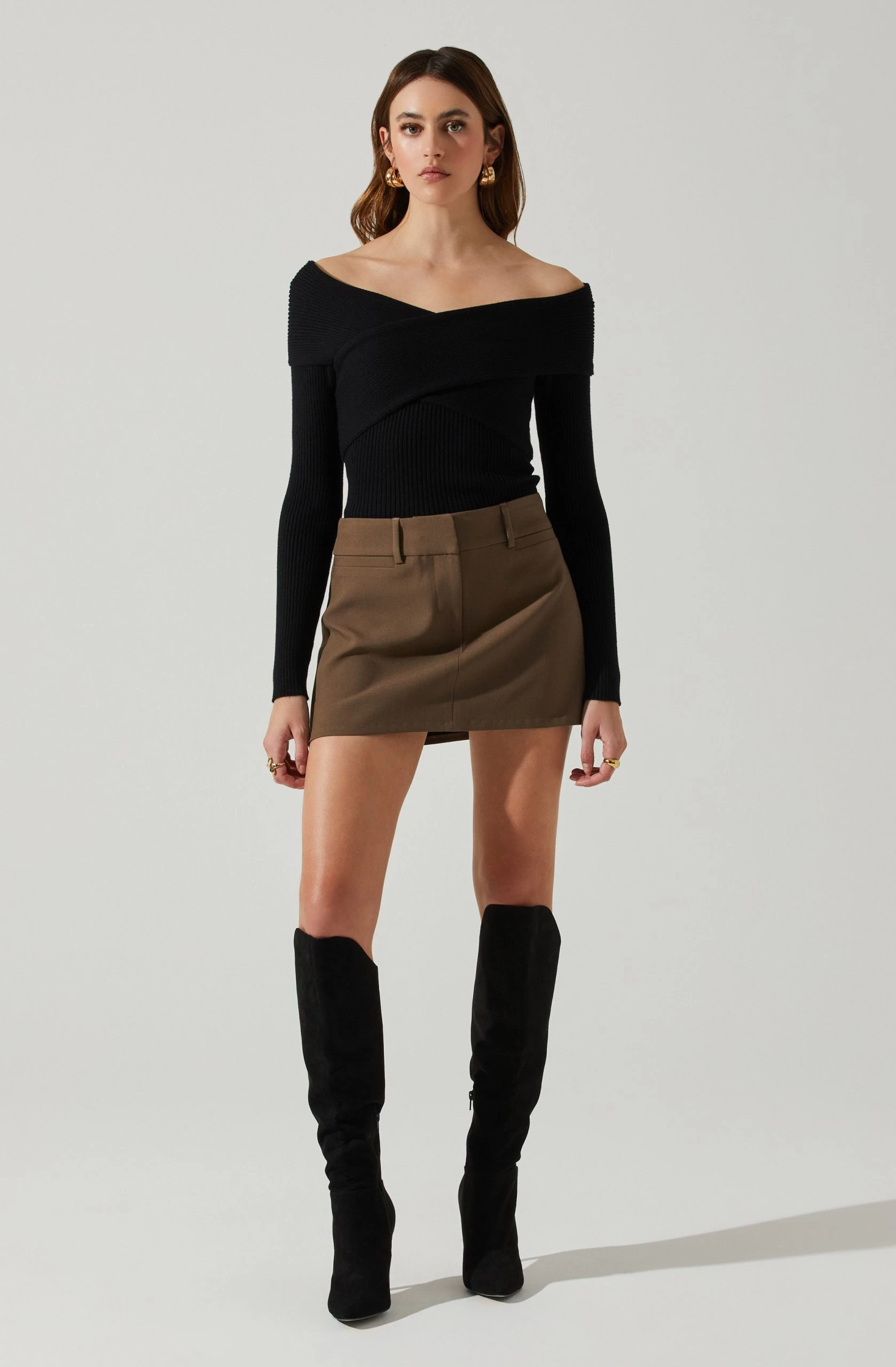 With a crisscross design on front, our Zayla Sweater features a graceful off-shoulder silhouette. Endlessly versatile for fall, it complements everything from wide-leg tailored trousers to a sleek mini skirt and tall boots.